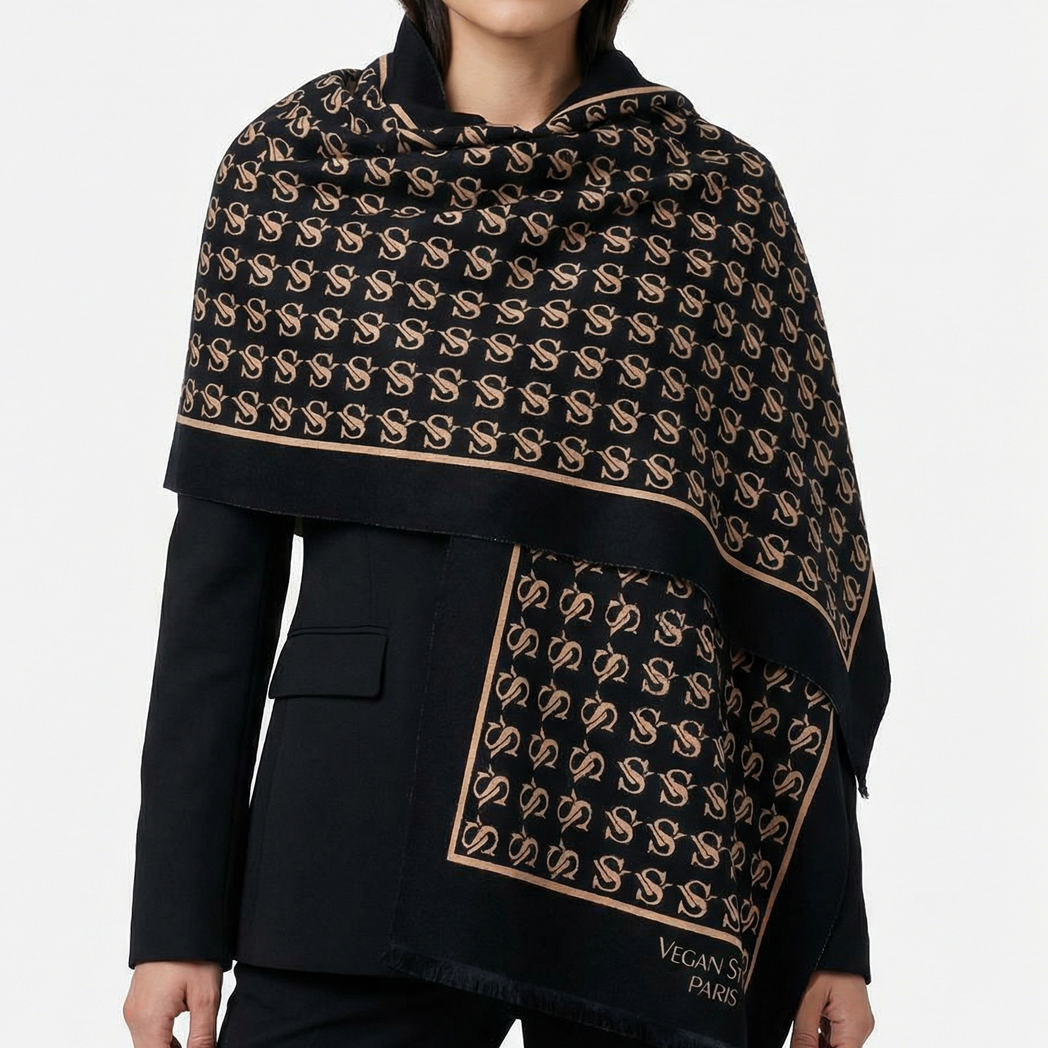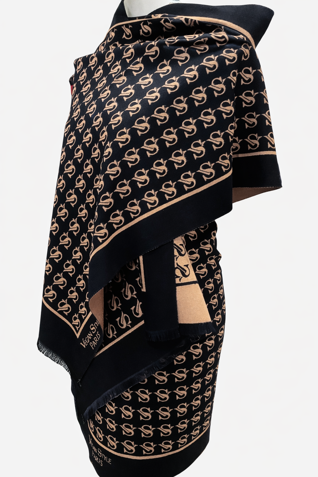 Ce châle reflète l'engagement de Vegan Style Paris pour une mode élégante, consciente et sans cruauté.